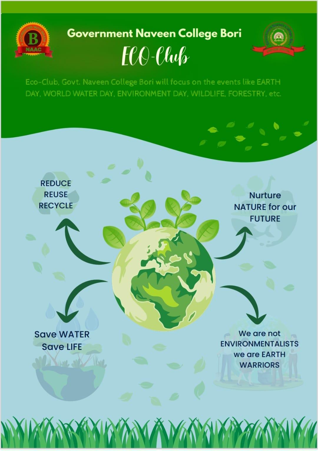 INTRODUCTION: Eco Club or Green Club is a group that promotes students learning about the environment “Environmental Protection Organization” This club works for the environment. Eco Club has been established in the college with the aim of making students aware about the environment. In order to create awareness about environmental imbalance in this club, environmental protection is not only limited to bookish knowledge but Efforts are being made to protect the environment due to the importance of activities.
